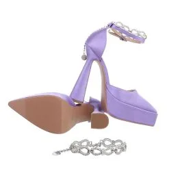 Ital-Design Plateaupumps Knöchelriemen, Blockabsatz, Strass, Kette