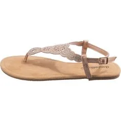 Die T-Steg-Sandalen aus dem Hause ambellis sorgen stets für einen schicken Style. Damit die Weite optimal reguliert werden kann, ist das Modell mit einer Schnalle versehen. Der Keilabsatz in komfortabler Höhe bietet ein angenehmes Tragegefühl und einen stilsicheren Touch. Der funktionale Materialmix aus Synthetik und Textil im Obermaterial unterstützt die Gestaltung des Paares.