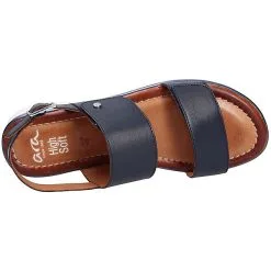 Bequeme Damensandale mit Comfort der Marke Ara aus einem feinen hochwertigem Glattleder.Dieses Leder verleiht einen edlen Look und ist gut zu pflegen. Ebenso glänzt das Modell durch eine weiche Lederausstattung. Das Fußbett(nicht auswechselbar)ist mit Leder bezogen und sorgt für ein angenehmes Fußklima. Für etwas breite Füße ist dieses Modell(weite G) genau das richtige. Der Keilabsatz hat eine Höhe von cirka 2 cm ,die aus einem weichen PU-Material bestehende Laufsohle schont die Gelenke und federt jeden Tritt optimal ab. Ein Klettverschluß zum einfachen und bequemen an- und ausziehen sorgt für einen guten Halt.Ebenfalls ist eine stufenlose Anpassung an den Fuß möglich. Die Schuhgröße fällt regulär aus.