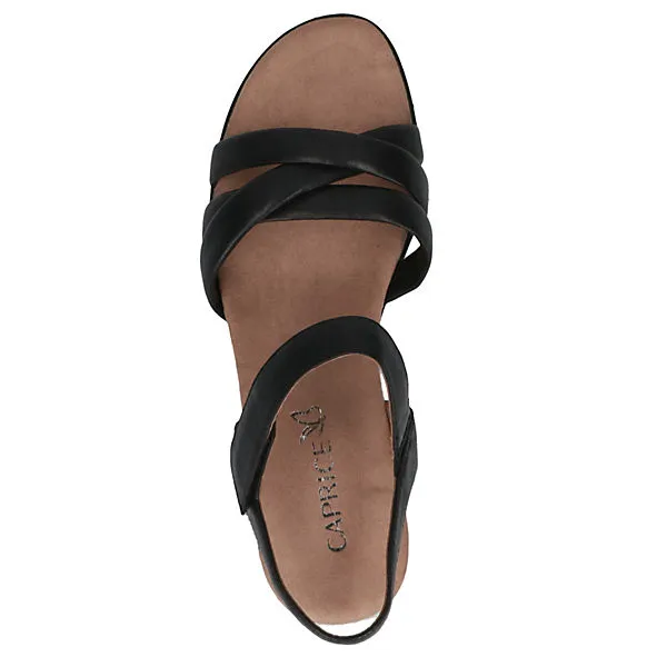 Die Sandalen 9-28709-20 aus dem Hause Caprice im modischen Style. Das Obermaterial aus pflegeleichtem echten Leder sowie das Innenmaterial aus Synthetik sorgen für perfekten und komfortablen Tragekomfort in der warmen Jahreszeit. Der Klettverschluss sorgt für den leichten Einstieg und setzt diese Schuhe auch noch stilvoll in Szene. Sie haben einen Keilabsatz mit einer Höhe von 4,5 cm und eine Laufsohle aus Kunststoff. Die Caprice sind absolut toll mit allem kombinierbar.Die CAP Memotion Mittelsohle sorgt für ein angenehmes und federleichtes Laufgefühl.
