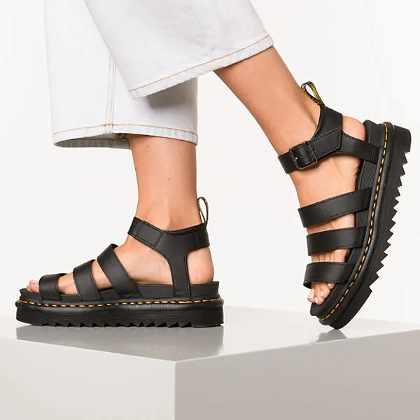 Die Dr. Martens Riemchensandalen sorgen stets fĂĽr einen schicken Auftritt. Das Plateau setzt einen modischen Akzent. Damit die Weite individuell reguliert werden kann, ist das Modell mit einem Riemenverschluss ausgestattet.