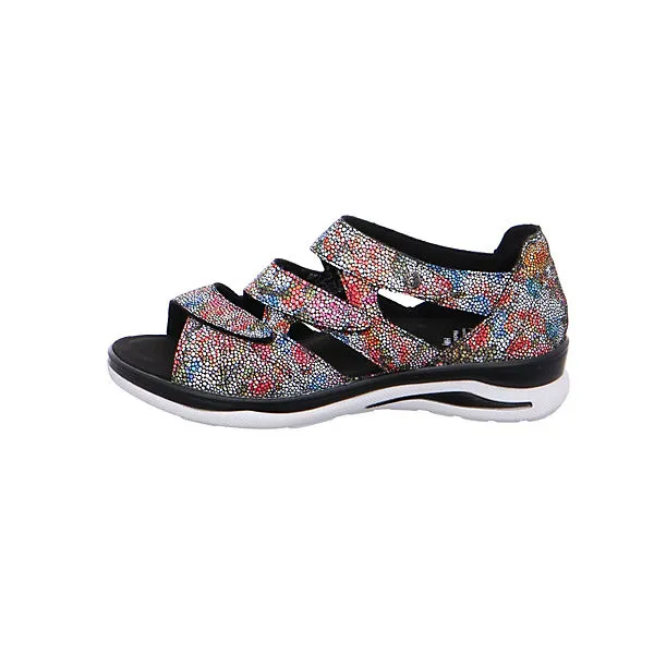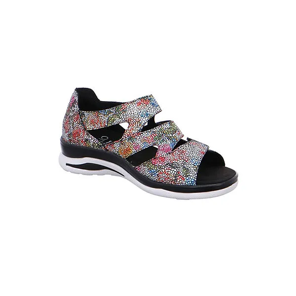 Schöne Sandalen von Fidelio aus einem feinen hochwertigem geprägten Glattleder. Der Schuh hat eine normale Weite. Der Absatz ist durchgehend flach. Die Laufsohle ist aus Krepp. Der Klettverschluss zum einfachen und bequemen an- und ausziehen sorgt für einen guten Halt.Ebenfalls ist eine stufenlose Anpassung an den Fuß möglich. Die Schuhgröße fällt regulär aus.