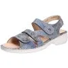 Sportive Herren Sandalen von Finn Comfort aus einem feinen hochwertigem Nubukleder. Innen ist der Schuh mit einem cromfrei gegerbtem Leder ausgestattet. Der Schuh verfügt über eine etwas breitere Weite. Der Absatz ist durchgehend flach. Die weiche PU-Sohle schont die Gelenke und federt jeden Ihrer Tritte optimal ab. Der Klettverschluss zum einfachen und bequemen an- und ausziehen sorgt für einen guten Halt.Ebenfalls ist eine stufenlose Anpassung an den Fuß möglich. Die Schuhgröße fällt größer aus.