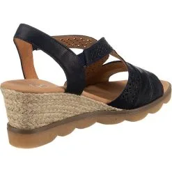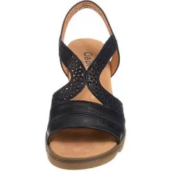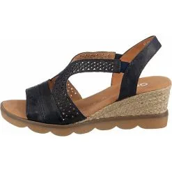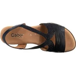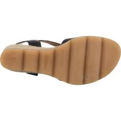 Die Gabor Keilsandaletten sind am Keilsabsatz mit geflochtenem Bastbesatz dekoriert. Die Laufsohle ist strukturiert, profiliert und rutschhemmend.