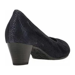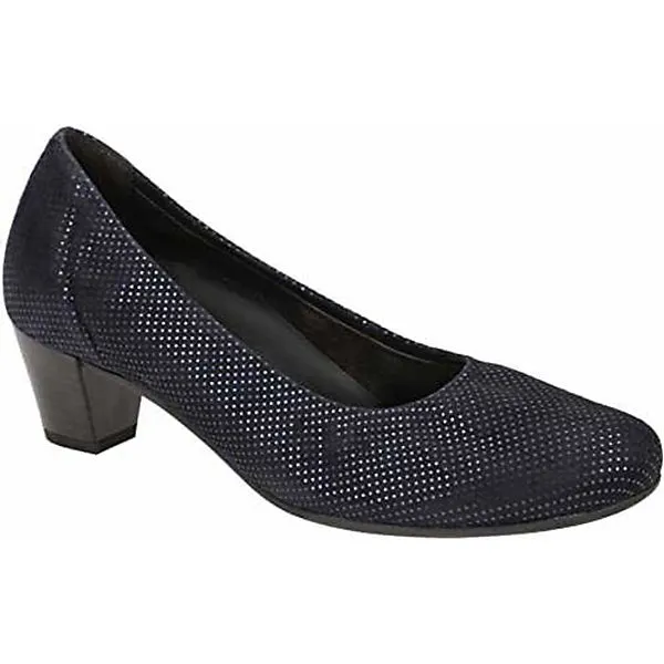 Flotter Pumps von Gabor aus angenehm weichem und hochertigem Leder. Innen ist der Schuh mit einem cromfrei gegerbtem Leder ausgestattet. Der Schuh verfügt über eine etwas breitere Weite. Der stabile Blockabsatz hat eine Höhe von cirka 5 cm. Die Laufsohle ist aus Gummi. Die Schuhgröße fällt regulär aus.
