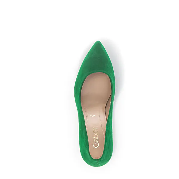 Gabor Damen Pumps Grün samtiges Rauleder – klassischer Schnitt – Lederfutter und leicht gepolsterte Lederdecksohle – schmaler, ca. 7 cm hoher Absatz – flexible Laufsohle