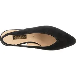 Chicer Damen Sling von Gabor aus einem weichen Veloursleder.Diese Leder hat eine samtartige Oberfläche, ist sehr weiches und atmungsaktiv. Das exzellente Innenleben aus bestem Leder gibt Ihnen ein erholsames Gefühl an langen Tagen. Für gutes Fußklima sorgt die lederbezogene Decksohle. Geschnitten ist die Form für normal breite Füße (Weite F). Der stabile Blockabsatz hat eine Höhe von cirka 3 cm ,für gute Bodenhaftung sorgt die abriebfeste und griffige Gummisohle. Die spitze Form verleiht dem Schuh einen modischen, aktuellen Look. Der Schuh sieht dadurch schmaler und gleichzeitig elegant aus. Die Schuhgröße fällt regulär aus. GABOR ist führender Hersteller qualitativ hochwertiger, modischer Damenschuhe. Neben modischer Aktualität sind Passform und Verarbeitungsqualität die wesentlichen Merkmale des GABOR Markenschuhs.Die langjährige Erfahrung ist die Grundlage dessen, was das Unternehmen als „Gabor-Qualität“ bezeichnet. Nur höchste Ansprüche an jedes Paar Schuhe haben Gabor zur Traditionsmarke werden lassen.
