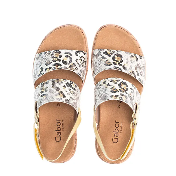 Schöne Sandalen von Gabor aus einem feinen hochwertigem Glattleder. Innen ist der Schuh mit einem cromfrei gegerbtem Leder ausgestattet. Der Schuh hat eine normale Weite. Der Absatz ist durchgehend flach. Die Laufsohle ist aus Krepp. Der Klettverschluss zum einfachen und bequemen an- und ausziehen sorgt für einen guten Halt.Ebenfalls ist eine stufenlose Anpassung an den Fuß möglich. Die Schuhgröße fällt regulär aus.