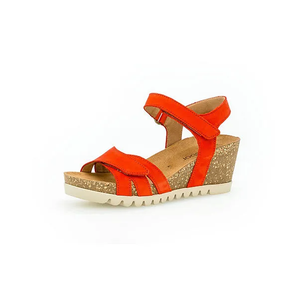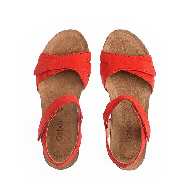 Schöne Sandalen von Gabor aus einem feinen hochwertigem Veloursleder. Innen ist der Schuh mit einem cromfrei gegerbtem Leder ausgestattet. Der Schuh hat eine normale Weite. Der Keilabsatz hat eine Höhe von cirka 4 cm. Die Laufsohle ist aus Gummi. Der Klettverschluss zum einfachen und bequemen an- und ausziehen sorgt für einen guten Halt.Ebenfalls ist eine stufenlose Anpassung an den Fuß möglich. Die Schuhgröße fällt regulär aus.