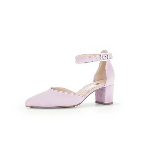 Hersteller: Gabor Hersteller Art-Nr.: 21.340.33 Modellname: 21.340 Machart: Damenschuhe – Riemchen Pumps Farbe: lila (viola) Obermaterial: Echtleder – Velour – Rauhleder (Samtchevreau) Innenfutter: Echtleder – dünnes Leder Kaltfutter Innensohle: Echtleder – Fußbett Wechselfußbett: nicht herausnehmbare Innensohle Laufsohle: Gummisohle Verschluss: Schnalle Absatzart: Blockabsatz Absatzhöhe: hoher Absatz, ca. 5,5cm Schuhform: spitz Größenhinweis: fällt normal aus Weitenangabe: F – normal Weite