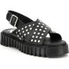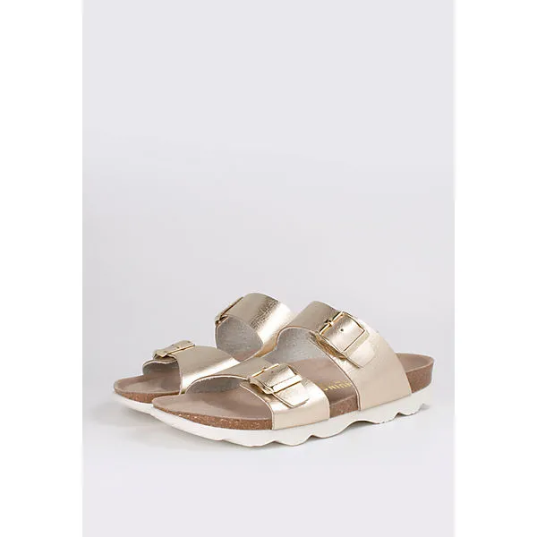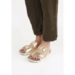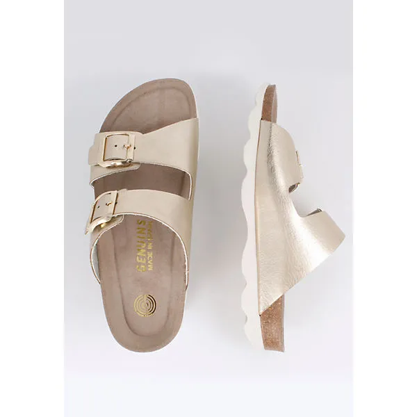 Die Sandale von Genuins besticht durch ihr elegantes Aussehen mit breiten metallicfarbenden Riemen und Lederprägung.