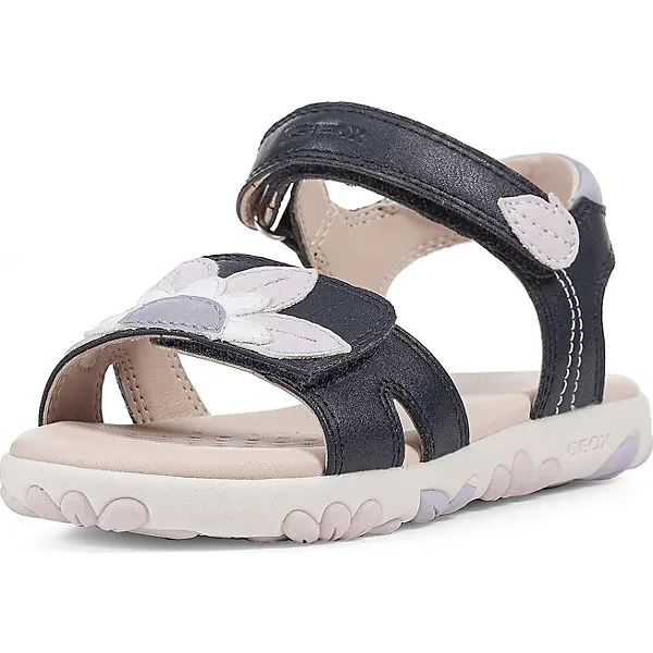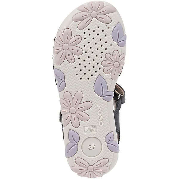 Mit den Sandalen der Marke GEOX kann dein Kind unbeschwert die Welt erkunden. Für ein komfortables Tragegefühl besteht die Decksohle aus echtem Leder. Ein optimales Klima ensteht durch die Belüftungsperforierungen in der Deck- und Laufsohle gesorgt. Diese Schuhe präsentieren sich mit einem Futter aus Polyester. Ein schnelles Hineinschlüpfen ist durch den Klettverschluss ein Leichtes.