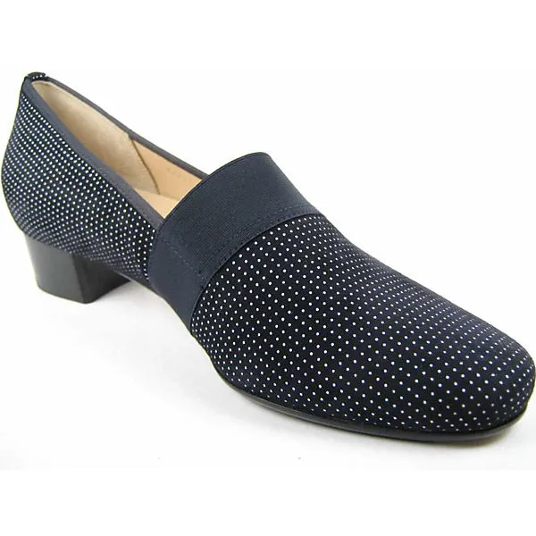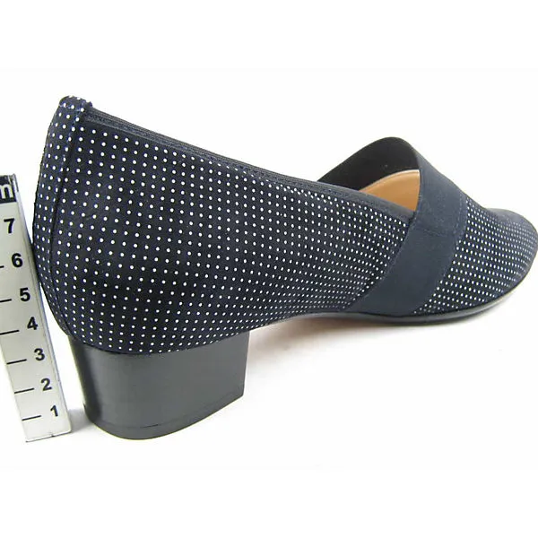 Flotter Pumps von HASSIA aus einem feinen hochwertigem Nubukleder. Innen ist der Schuh mit einem cromfrei gegerbtem Leder ausgestattet. Der Schuh hat eine normale Weite. Der stabile Blockabsatz hat eine Höhe von cirka 3 cm. Die Laufsohle ist aus Gummi. Die Schuhgröße fällt regulär aus.
