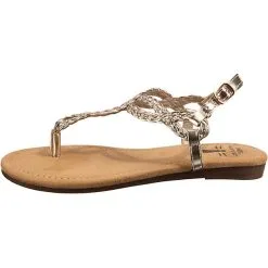 Die ansprechend gestalteten T-Steg-Sandalen aus dem Hause Inselhauptstadt vervollständigen jedes Outfit. Dieses Modell kommt ohne jeglichen Verschluss aus, sodass ganz bequem hineingeschlüpft werden kann. Das modische Obermaterial aus Synthetik ergänzt die Gestaltung dieses Schuhs.