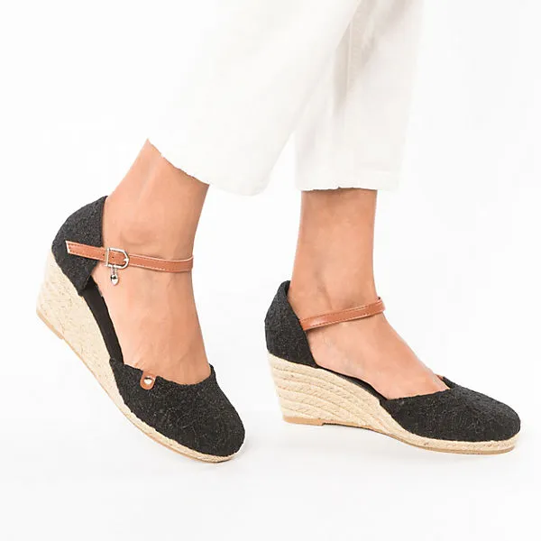 Unterstreichen jedes Outfit: Diese ansprechenden Keilpumps aus dem Hause Inselhauptstadt. Der mittelhohe Keilabsatz bietet Ihnen ein angenehmes TragegefĂĽhl sowie einen stilsicheren Look. Das textile Futter besteht aus Canvas und passt sich gut an den FuĂź an. Das robuste Obermaterial aus Canvas setzt einen sportiven Akzent. Durch die Schnalle kann die Weite der Schuhe optimal eingestellt werden.