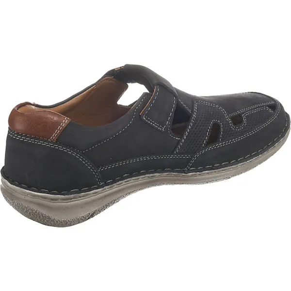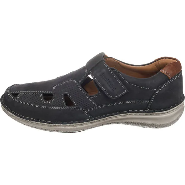 Aus dem Hause Josef Seibel stammen die Anvers 81 Herren Klett-Halbschuhe in Blau mit Ziernähten, Cut Outs und Lasercut-Muster. Das Klettriemchen verspricht eine optimale Passform. Zudem lässt sich das Fußbett wechseln.