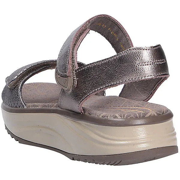 Da freut sich Ihr Fuß: Mit der Sandale FLORES BRONCE aus dem Hause JOYA wird laufen zum Vergnügen. Angenehm weich liegt das hochwertige Glattleder am Fuß und verleiht dem Schuh einen besonderen Look. Auch die textile Innenverarbeitung überzeugt durch ihre angenehm weiche Beschaffenheit. Die aus Textil bestehende Decksohle bettet den Fuß angenehm. Der Schnitt ist für breitere Füße (Weite H) geeignet. Der Absatz ist durchgehend flach ,die Sohlenkategorie emotion steht für Freude am Stehen und Gehen.Die weich-elastische Joya Sohle dämpft jeden Stoß ab und unterstützt dadurch effektiv die Entlastung von Rücken und Gelenken. Das Ergebnis: ein einzigartiger Gehkomfort. Ideal für Menschen, die sich und ihre Füße mit einem einzigartig weichen Geh-Gefühl verwöhnen wollen.Kennzeichen der emotion-AIR Technologie ist die besonders breite Sohle im Fersen- und Vorfußbereich um Weichheit mit Stabilität optimal zu kombinieren. Wichtig ist diese Stabilität vor allem im Arbeits- und Outdoorbereich.Besonders geeignet für den sportiven Lifestyle und Anwendungsbereiche in Beruf und Freizeit wo die körperliche Entlastung beim Gehen und Stehen wichtig ist. Klettverschlüsse halten den Schuh sicher am Fuß und sorgen auch für die individuelle und optimale Anpassung. Die Schuhgröße fällt regulär aus.