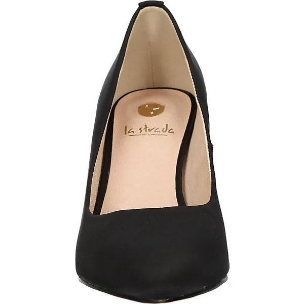 Unterstreichen viele unterschiedliche Outfits: Diese stilvoll gestalteten Pumps von La Strada©. Der funktionale Materialmix aus Synthetik und Textil im Obermaterial unterstützt den Look des Schuhs. Der modisch aktuelle Stilettoabsatz hat eine beachtliche Höhe, die für einen femininen Auftritt sorgt. Es handelt sich um ein Modell zum schnellen Hineinschlüpfen.