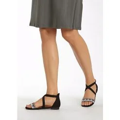 Sandale mit Schmucksteinen von LASCANA. Mit individuell verstellbaren Riemen für einen komfortablen Ein- und Ausstieg. Obermaterial aus Microfaser, Futter und Decksohle aus Lederimitat, Laufsohle aus Synthetik.