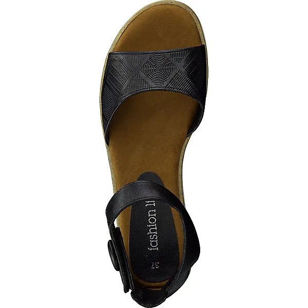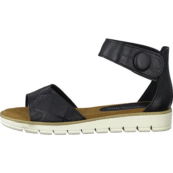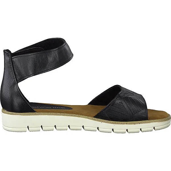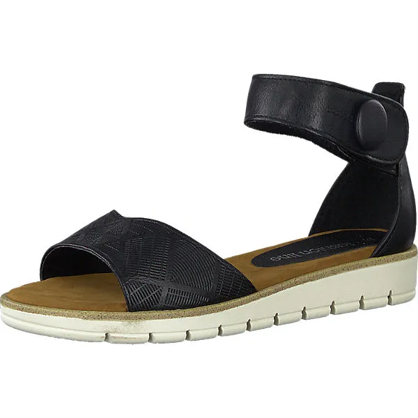 Die klassischen Sandalen von MARCO TOZZI zeigen sich mit modischer Obermaterial-Struktur am vorderen Riemen. Die flexible Profil-Laufsohle mit ganz dezentem Keilabsatz ist rutschhemmend.