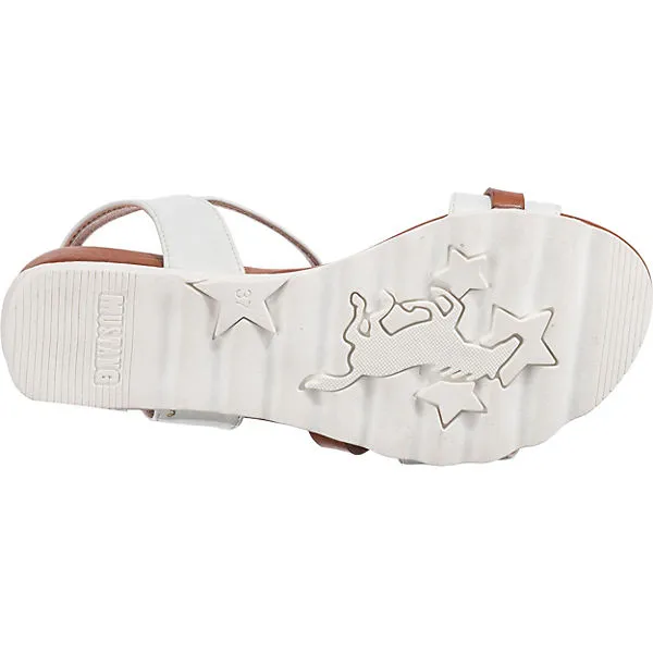 Die Sandalen der Marke MUSTANG sorgen stets fĂĽr einen perfekten Auftritt. Eine komfortable FuĂźanpassung ist durch den Klettverschluss kein Problem. Das ansprechende Synthetik-Obermaterial unterstĂĽtzt die Aufmachung des Paares.
