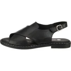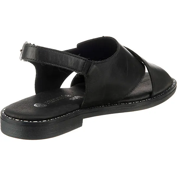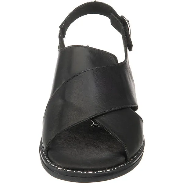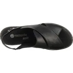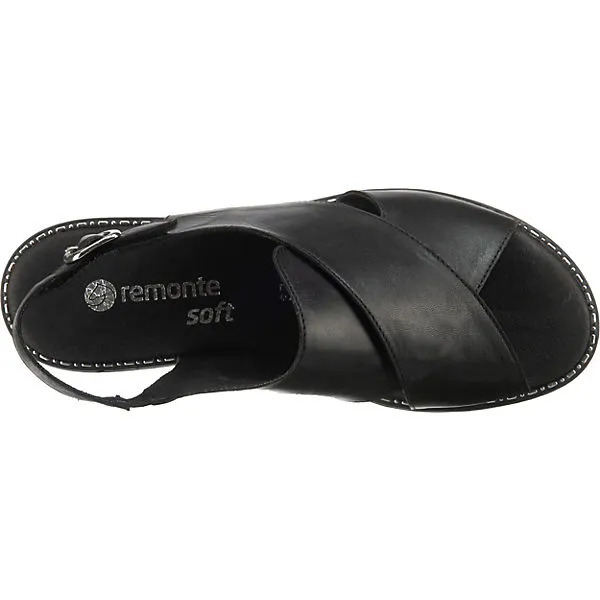 – klassische Sandalette fĂĽr Damen von Remonte – super weiches Leder in elegantem Schwarz – praktischer Klettverschluss unter der Schnalle – weich gepolsterte Lederdecksohle – rutschhemmende Gummilaufsohle
