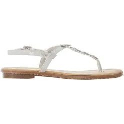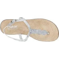 – modischer Zehentrenner von der Marke Rieker – mit verstellbarem Fersenriemchen – die weich gepolsterte Decksohle sorgt fĂĽr besten Laufkomfort – wunderschöner, mit silbernen Applikationen verzierter Steg – flexible Laufsohle
