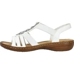 Die Komfort-Sandalen von rieker bewirken das bestmögliche Tragegefühl. Das Obermaterial dieser Schuhe besteht aus Synthetik und überzeugt mit der ansprechenden Aufmachung. Das Modell kommt ohne jeglichen Verschluss aus, sodass im Handumdrehen hineingeschlüpft werden kann.