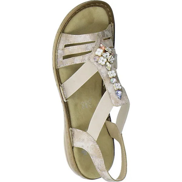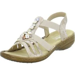 Absolute Must-Haves fĂĽr die Sommerzeit – das sind die Damen Riemchen-Sandalen von Rieker in RosĂ© mit BlĂĽmchen- und Steinchen-Applikationen. Elastikriemchen sorgen fĂĽr den richtigen Sitz. Eine weiche FuĂźbettung garantiert fĂĽr hervorragende Laufeigenschaften an warmen Tagen. Weiterhin sind diese sehr leicht und flexibel.