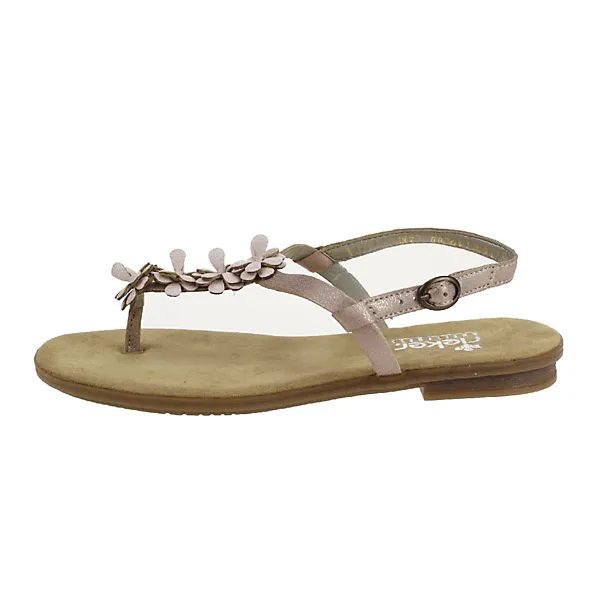 Schöne Sandalen von Rieker aus einem hochwertigem Synthetikmaterial. Der Schuh hat eine normale Weite. Der Absatz ist durchgehend flach. Die Laufsohle ist aus Gummi. Über die paraktische Schließe kann der Schuh dem Fuß optimal angepasst werden. Die Schuhgröße fällt regulär aus.