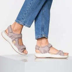 Diese 288 Komfort-Sandalen von ROMIKA zeigen sich mit einem Echtleder-Textil-Obermaterial und sitzen, dank der gepolsterten Klettriegel, sehr angenehm am FuĂź. Die rundherum leicht hochgezogene Decksohle bietet Halt und die flexible Profil-Laufsohle Trittsicherheit.