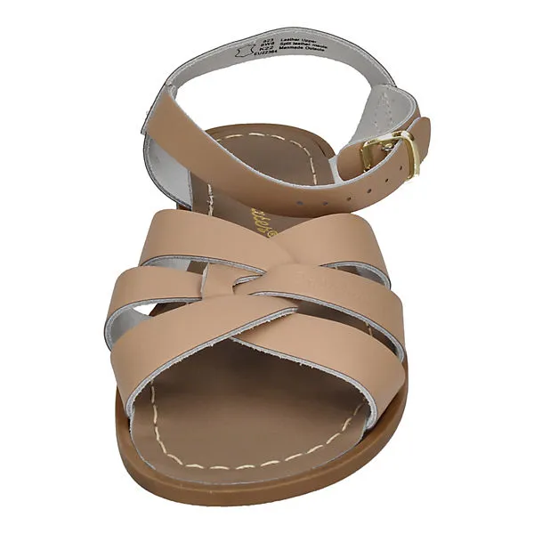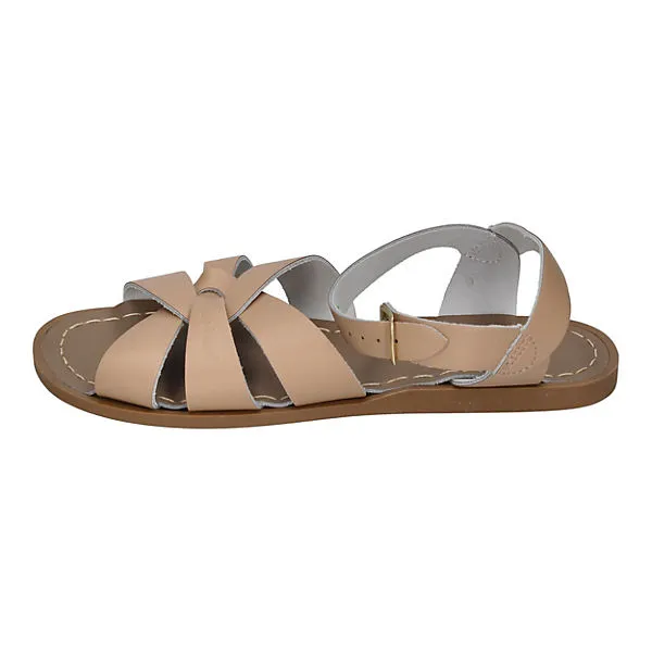 Die Marke Salt Water Sandals gibts schon seit den 1940er Jahren. Die Sandalen ORIGINAL in beige ĂĽberzeugen uns durch ihr klassisches Design und ihre groĂźartige Haltbarkeit. Die Sandalen können problemlos am Meer getragen werden – das Salzwasser kann den Sandaletten nichts anhaben.