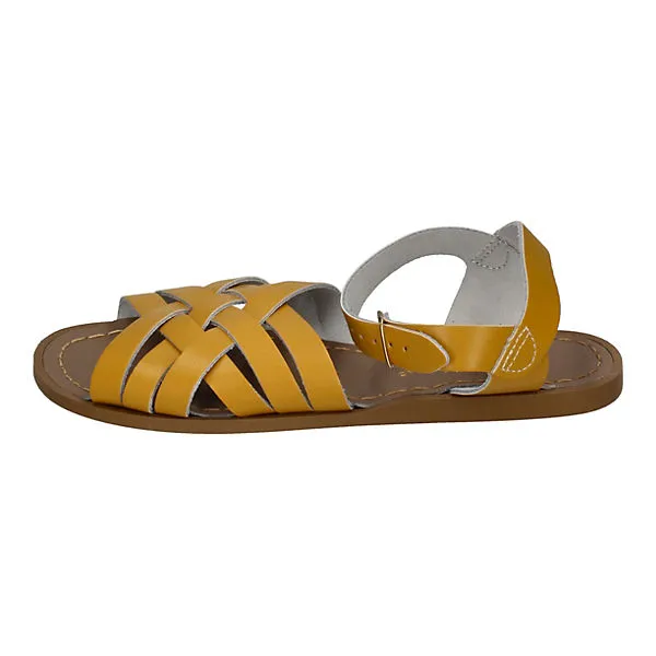Die Marke Salt Water Sandals gibts schon seit den 1940er Jahren. Die Sandalen Retro in gelb ĂĽberzeugen uns durch ihr klassisches Design und ihre groĂźartige Haltbarkeit. Die Sandalen können problemlos am Meer getragen werden – das Salzwasser kann den Sandaletten nichts anhaben.