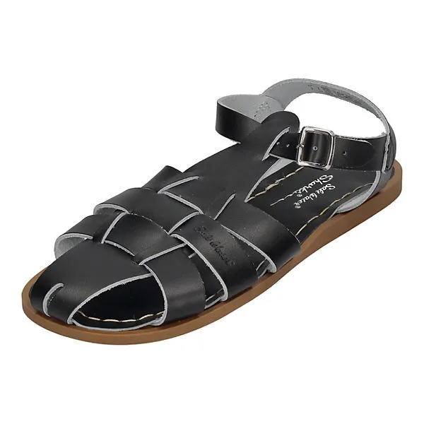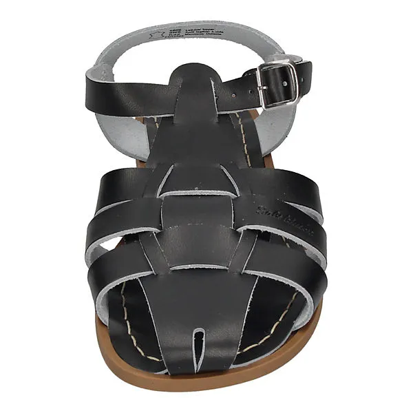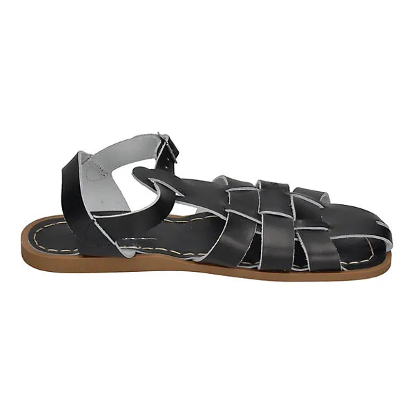 Die Marke Salt Water Sandals gibts schon seit den 1940er Jahren. Die Sandalen Shark in schwarz überzeugen uns durch ihr klassisches Design und ihre großartige Haltbarkeit. Die Sandalen können problemlos am Meer getragen werden – das Salzwasser kann den Sandaletten nichts anhaben. Alle Shark Originals sind neu aufgelegte Designs aus dem Archiv, die immer noch handgenäht werden und in St. Louis, Missouri, in limitierter Auflage produziert werden.