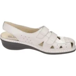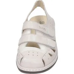 Bei diesem Produkt handelt es sich um einen Schuh aus der Kategorie Komfort-Sandalen für Damen. Als Obermaterial wurde Leder verwendet und im inneren Bereich des Schuhs wurde Lederfutter und herausnehmbare Lederdecksohle verarbeitet. Die Schuhweite dieses Artikels ist bequeme Weite und somit etwas breiter. Als Verschlussart wurde Klettverschluss gewählt und die TR-Sohle rundet das Produkt ab.