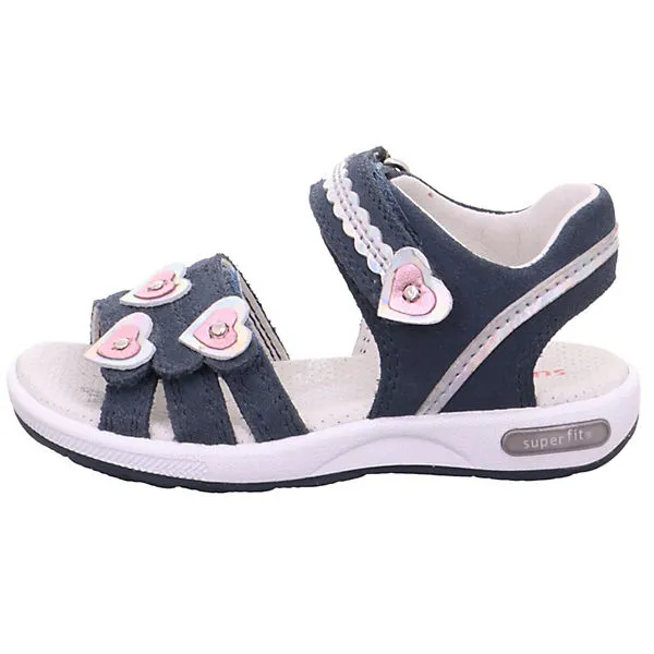 Diese Sandale von superfit vereint mädchenhaften Charme mit der bewährten superfit Technologie. Das Obermaterial besteht aus strapazierfähigem und hochwertigem Veloursleder und ist mit süßen Herzchen-Applikationen veredelt. Eine zauberhafte, holografische Folie glänzt dabei in allen Farben. Der breite Klettverschluss vorne sowie jener im Bereich des Fußrückens erlauben einen schnellen Einschlupf, zudem kann die Sandale in der Weite reguliert werden. Das weiche Lederfutter sorgt, gemeinsam mit der bewährten superfit-Passform, für ein angenehmes Tragegefühl. Die Laufsohle, die in einer dekorativen Flechtoptik gestaltet ist, wirkt rutschhemmend und gewährt bestmöglichen Grip. Die superfit Sandale namens „EMILY“ wird in der WMS-Weite M IV gefertigt.
