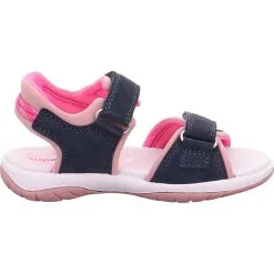 Unbeschwert die Welt entdecken: Diese Sandalen aus dem Hause superfit. Für ein angenehmeres Tragegefühl besteht das Fußbett aus echtem Leder. Der praktische Materialmix aus Synthetik und Leder im Obermaterial unterstützt die Gestaltung des Paares. Dank des Klettverschlusses kann das Modell zügig an- und ausgezogen werden.