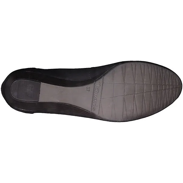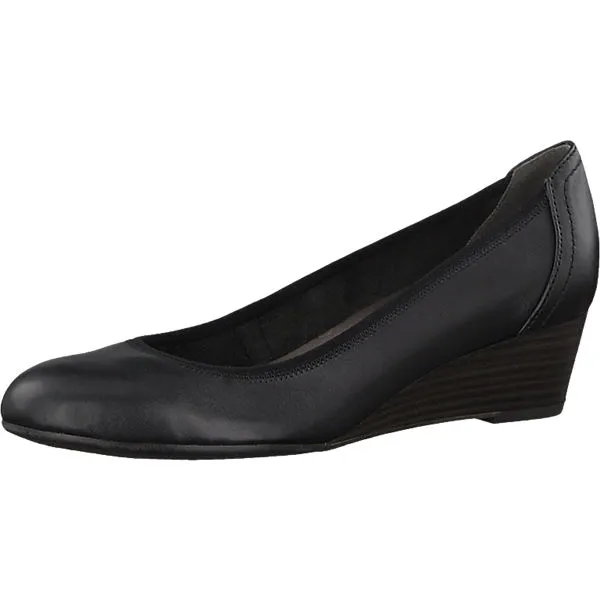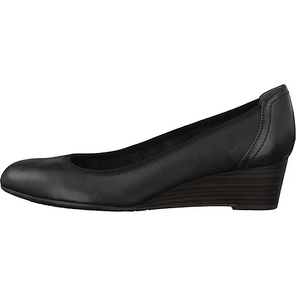 Die Tamaris Keilpumps sind aus glattem und anpassungsfähigem Leder gearbeitet und zeigen sich in dezenter Gestaltung. Die Decksohle ist leicht gepolstert.