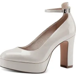 Ein echter Blickfang sind diese Pumps von der Marke Tamaris. Der dezente Blockabsatz sorgt für einen modischen Auftritt. Das ansprechende Obermaterial aus Synthetik unterstützt das Design des Modells. Die Weite lässt sich optimal anpassen, weil der Schuh mit einer Schnalle versehen ist.