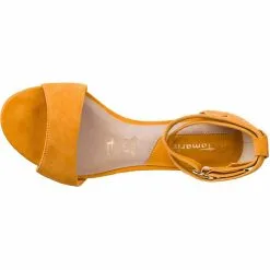 Die Absatz-Sandale von der Marke Tamaris begeistert durch ihr flexibeles Obermaterial aus Leder. Die Weitenregulierung an der Schließe sorgt für eine angenehme Passform.