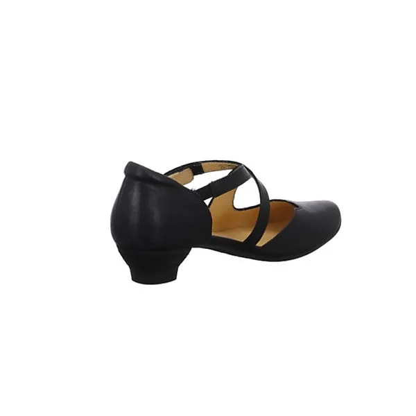 Flotter Pumps von Think aus einem feinen hochwertigem Glattleder. Innen ist der Schuh mit einem cromfrei gegerbtem Leder ausgestattet. Der Trichterabsatz hat eine Höhe von cirka 4 cm. Die weiche PU-Sohle schont die Gelenke und federt jeden Ihrer Tritte optimal ab. Der Klettverschluss zum einfachen und bequemen an- und ausziehen sorgt für einen guten Halt.Ebenfalls ist eine stufenlose Anpassung an den Fuß möglich. Die Schuhgröße fällt regulär aus.