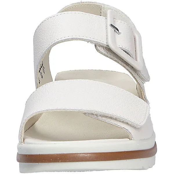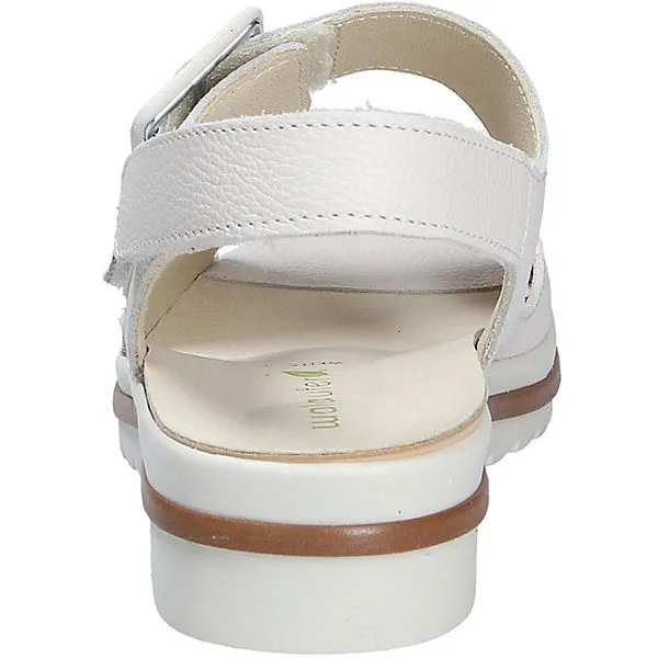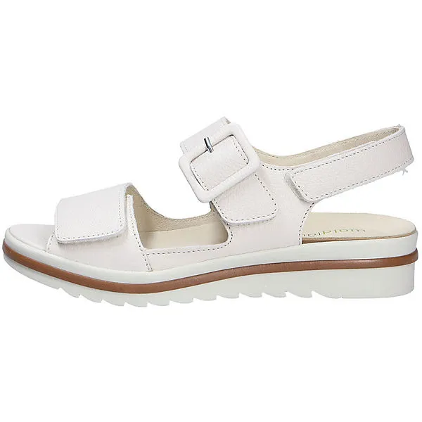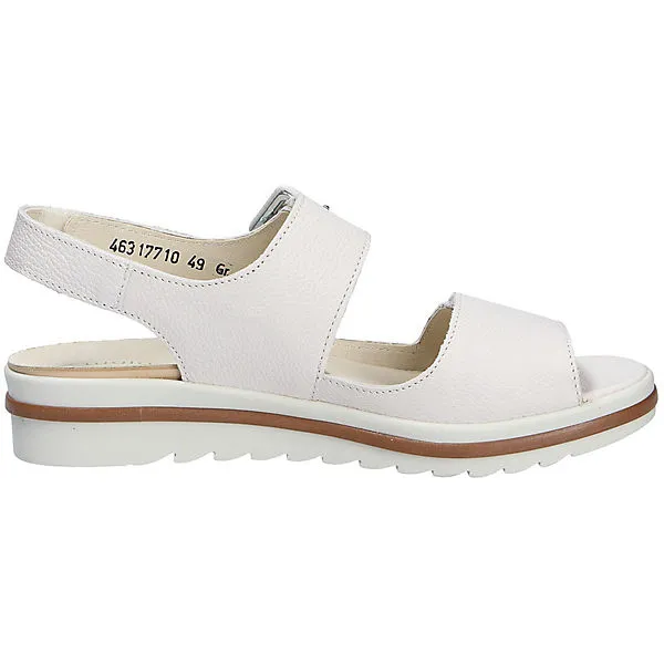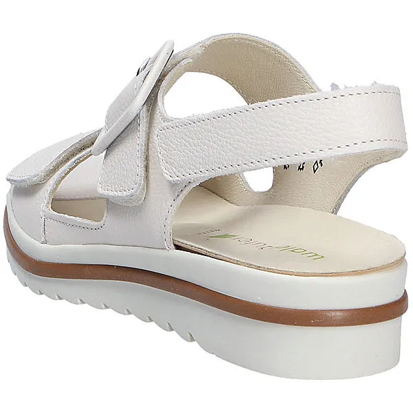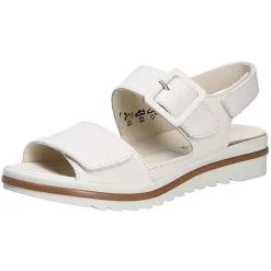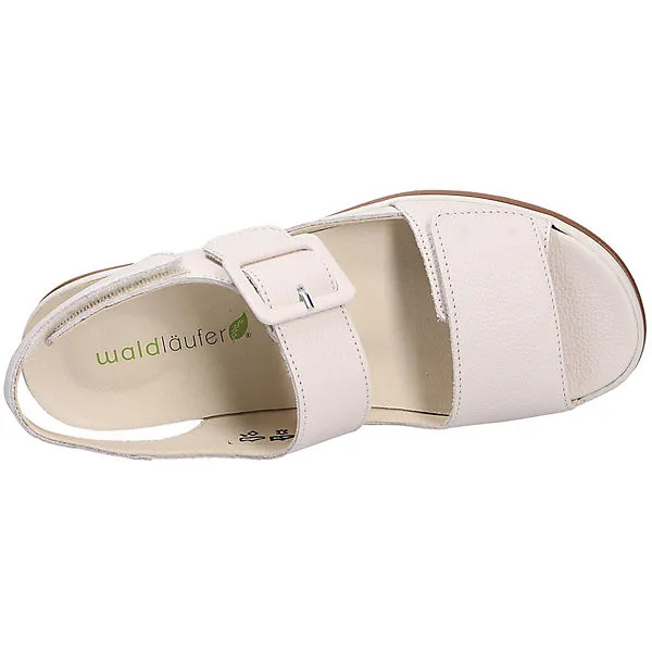 Bequeme Damensandale mit Comfort der Marke Waldläufer aus einem feinen hochwertigem Glattleder.Dieses Leder verleiht einen edlen Look und ist gut zu pflegen. Ebenso glänzt das Modell durch eine weiche Lederausstattung. Die mit einem weichen Polster unterlegte lederbezogene Einlegesohle sorgt für ein angenehmes Fußklima, ist auswechselbar und somit für lose Einlagen geeignet. Auf diesen Schuh freuen sich besonders etwas breitere Füße:Die Weite H bietet hier ausreichend Platz. Der Keilabsatz hat eine Höhe von cirka 1 cm ,als Sohlenmaterial kommt ein griffiges und abriebarmes Gummi zum Einsatz. Ein Klettverschluß zum einfachen und bequemen an- und ausziehen sorgt für einen guten Halt.Ebenfalls ist eine stufenlose Anpassung an den Fuß möglich. Die Schuhgröße fällt regulär aus.