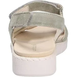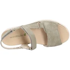 Bequeme Damensandale mit Comfort von Waldläufer aus einem weichen Veloursleder.Diese Leder hat eine samtartige Oberfläche, ist sehr weiches und atmungsaktiv. Ebenso glänzt das Modell durch eine weiche Lederausstattung. Die mit einem weichen Polster unterlegte lederbezogene Einlegesohle sorgt für ein angenehmes Fußklima, ist auswechselbar und somit für lose Einlagen geeignet. Auf diesen Schuh freuen sich besonders etwas breitere Füße:Die Weite H bietet hier ausreichend Platz. Der Keilabsatz hat eine Höhe von cirka 1 cm ,als Sohlenmaterial kommt ein griffiges und abriebarmes Gummi zum Einsatz. Klettverschlüsse halten den Schuh sicher am Fuß und sorgen auch für die individuelle und optimale Anpassung. Die Schuhgröße fällt regulär aus.