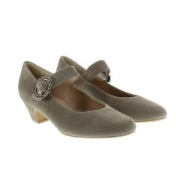BETTY – Spangenpumps mit Dirndl-Schließe „Schick und Bequemlichkeit schließen sich nicht aus. Unser Trachten-Spangenpumps BETTY aus hochwertigem Veloursleder oder alternative in Kalbsleder schmiegen sich sanft an Ihre Füße. Innovative Polsterungen garantieren höchsten Komfort. Sie werden diese Schuhe kaum spüren.Mit dem lederbezogenen 4-Zentimeter-Absatz sorgen die Trachtenpumps für Ihren perfekten Auftritt. Die verstellbare Spange gibt Ihnen sicheren Halt. Kombinieren Sie Ihr Dirndl mit diesen wunderschönen Pumps! Trachtenpumps BETTY können Sie ebenso zu festlichen Anlässen oder im Alltag zur Jeans tragen. Die stilvollen Schuhe begleiten Sie, wohin Sie wollen!Innovative Polsterungen für ein tolle Passform und Tragekomfort