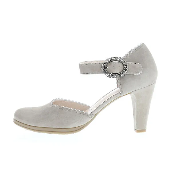 Unser gelenkoffener Trachtenpumps mit Spange SOFINE in Samtziegenlederauf Plateau und lederbezogenen Absatz. Die Spangenpumps werden gerne als Brautschuh für Ihre Hochzeit oder andere Feste gekauft. Lange Nächte sind auf jeden Fall kein Problem.